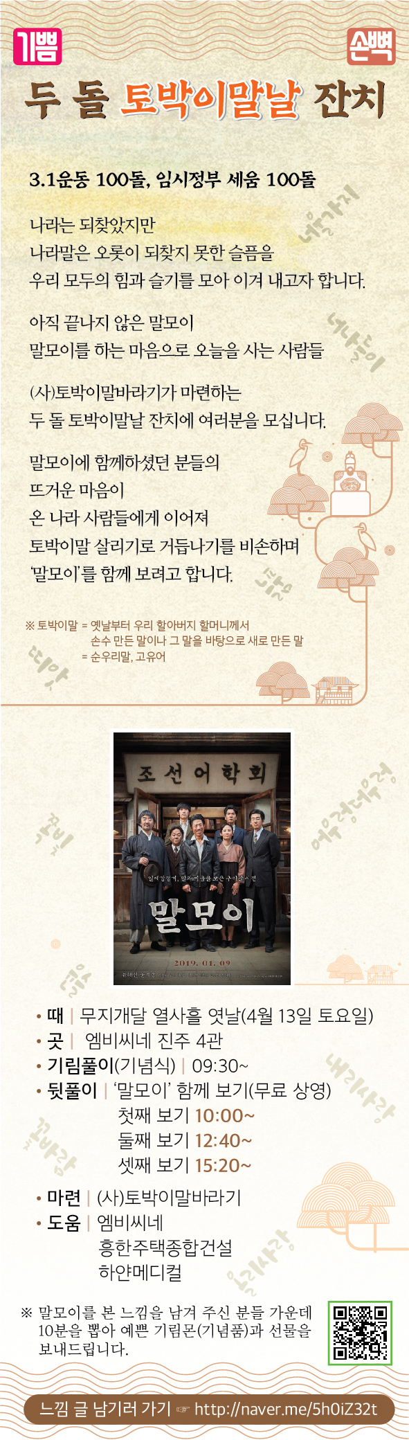 참우리말 토박이말을 기리는 두 돌 토박이말날 잔치를 조그마하게 마련했습니다.^^