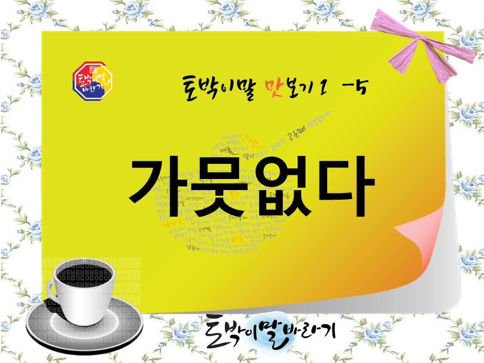 | [토박이말 맛보기1]-6 가붓하다 (0) | 2019.05.09 |