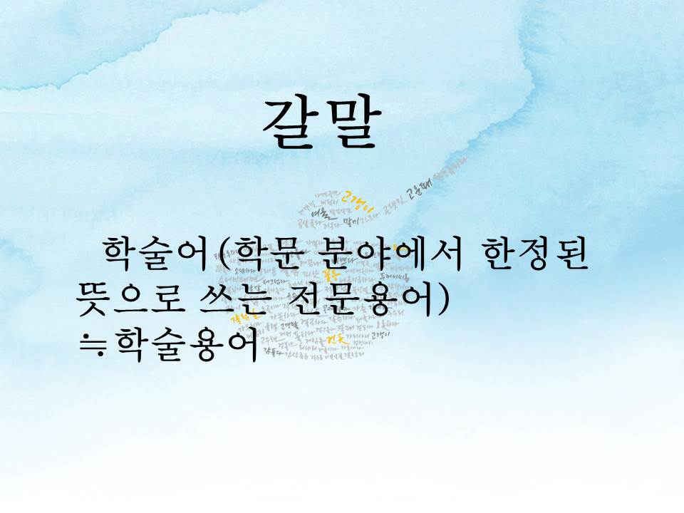 아이들이게 오늘 토박이말을 맛보여 주었습니다. 오늘 토박이말은 '갈말'입니다. '갈말'은 '과학', '수학' 처럼 학문에서 쓰이는 전문용어로 '학술어', '학술용어'와 같은 말이라고 풀이를 해 주었습니다. 학문을 뜻하는 '학'과 같은 토박이말에 '갈'이라는 말이 있었는데 '음성학'을 옛날에는 '소리갈'이라고 했으며 '갈'에 쓰이는 말이니까 '갈말'이라고 한다고 말해 주었지요. 학문을 갈고 닦는다는 말이 있는데 이것을 볼 때 '갈'은 '갈다'에서 온 것 같다는 말도 함께 말입니다. 아이들에게 '학술어', '학술용어'가 쉬운지 '갈말'이 쉬운지 물으니 '갈말'이 쉽다고 합니다.