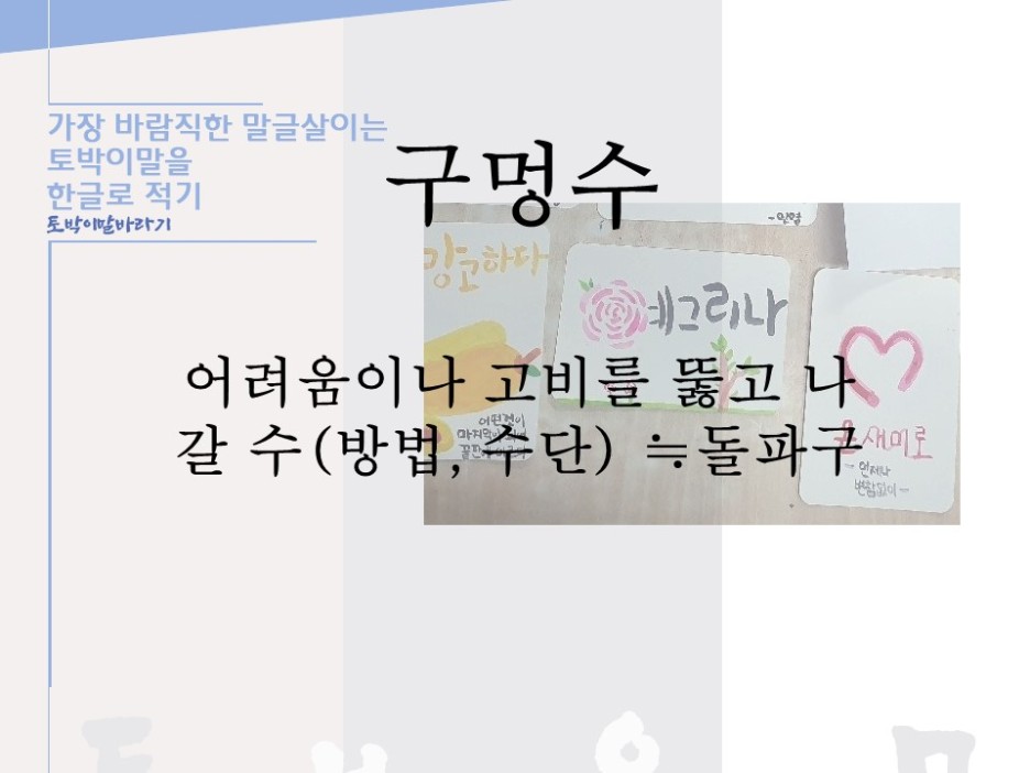 #토박이말 #살리기 #토박이말 #토박이말바라기 #이창수 #바람 #숫우리말 #순우리말 #고유어 #구멍수 #돌파구