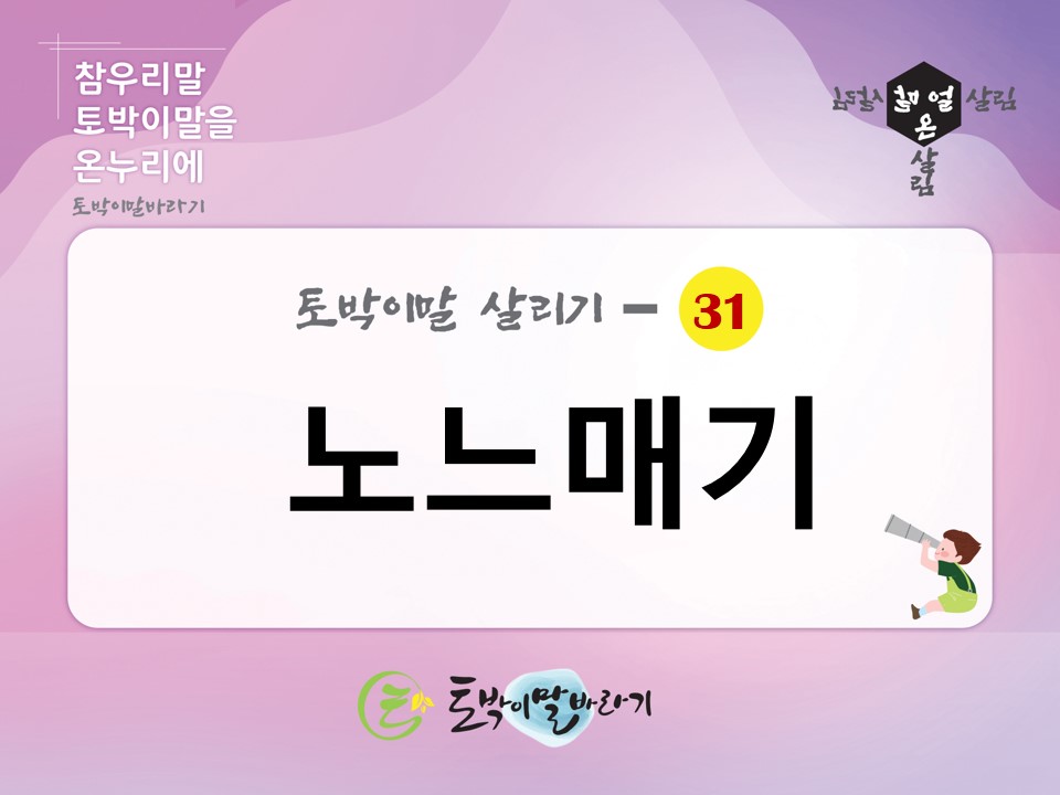 앞으로 '배분', '분배', '할당'이라는 말을 써야 할 일이 있을 때 '노느매기'라는 토박이말을 떠올려 써 보시기 바랍니다. 오늘도 토박이말에 마음을 써 봐 주시고 좋아해 주시며 둘레 사람들께 나눠 주시는 여러분 모두 고맙습니다.