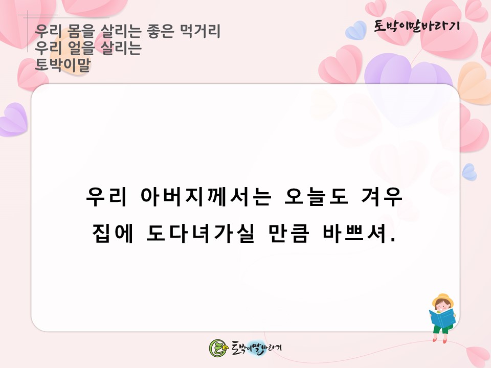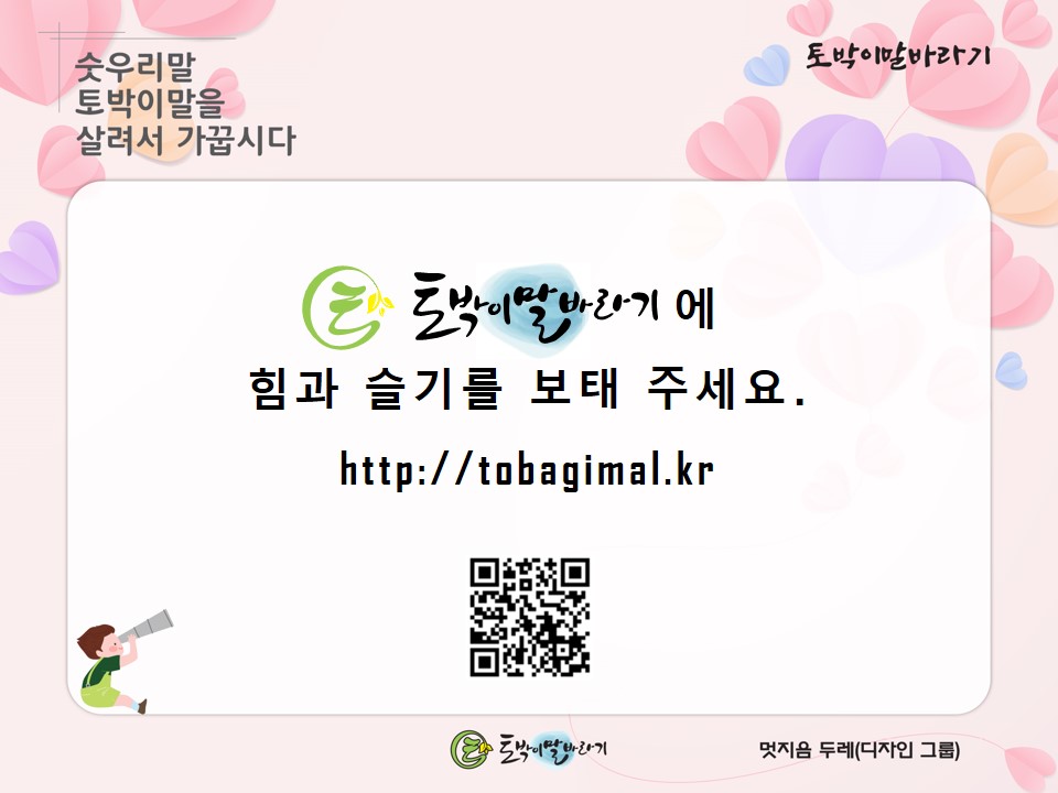 오늘도 토박이말에 마음을 써 봐 주시고 좋아해 주시며 둘레 사람들에게 나눠 주시는 여러분 모두 고맙습니다.