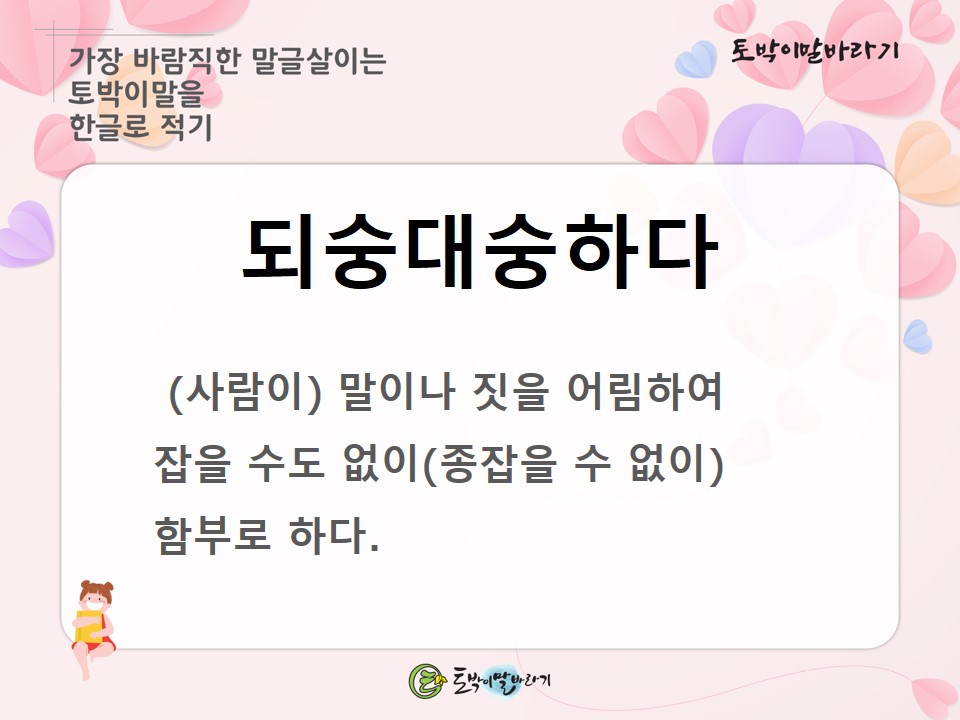 #토박이말바라기 #이창수 #토박이말 #살리기 #되숭대숭하다 #터박이말 #참우리말 #숫우리말 #순우리말 #고유어
