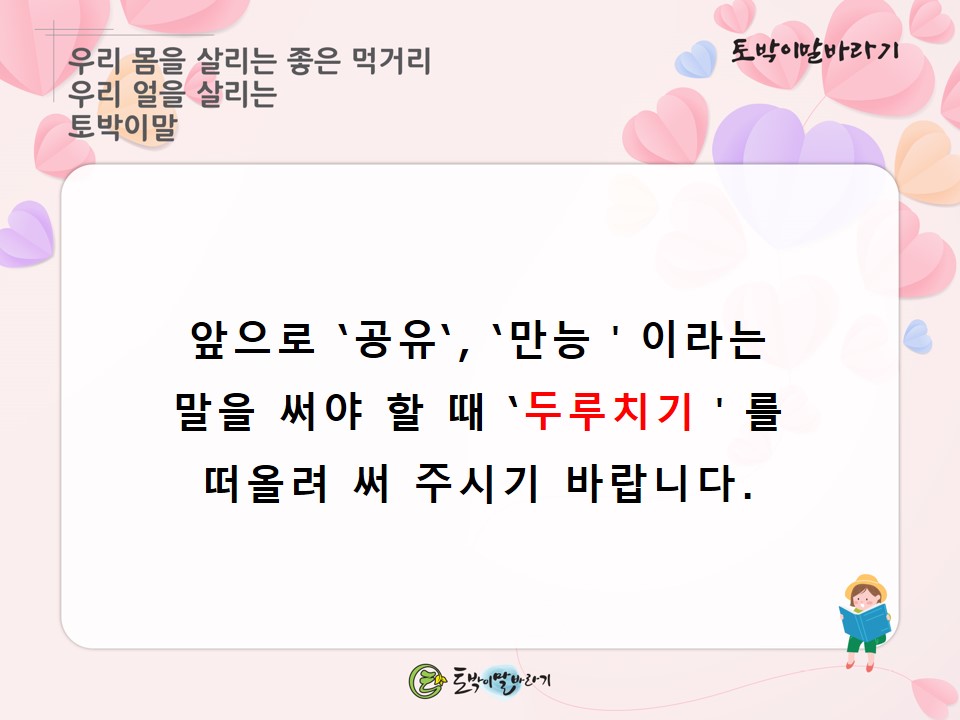오늘도 토박이말에 마음을 써 봐 주시고 좋아해 주시며 둘레 사람들에게 나눠 주시는 여러분 모두 고맙습니다.