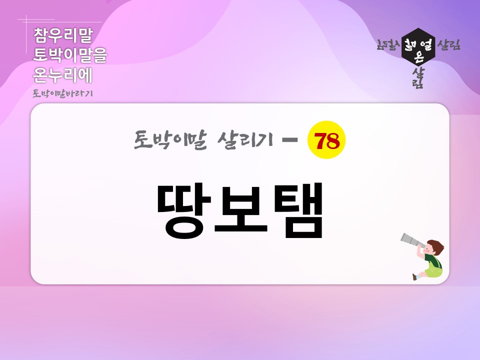 [토박이말 살리기]1-78 땅보탬