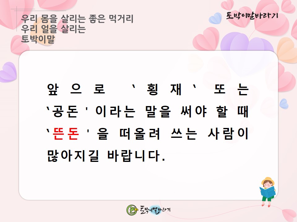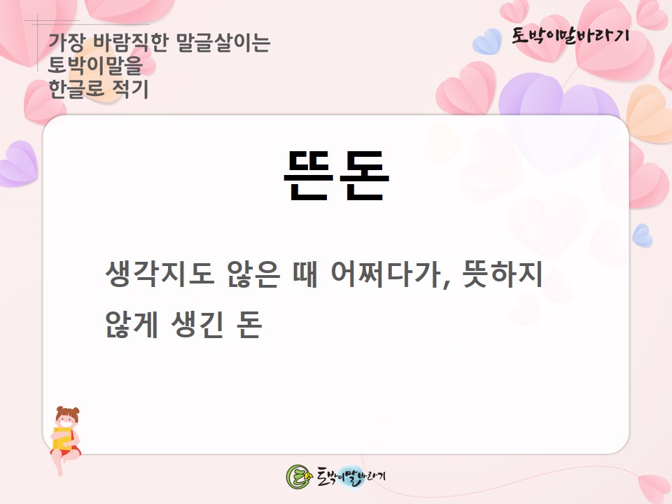 #토박이말바라기 #이창수 #토박이말 #살리기 #뜬돈 #횡재 #공돈 #참우리말 #숫우리말 #순우리말 #고유어