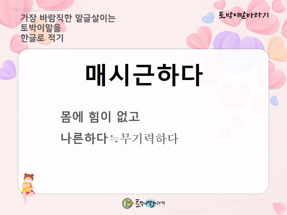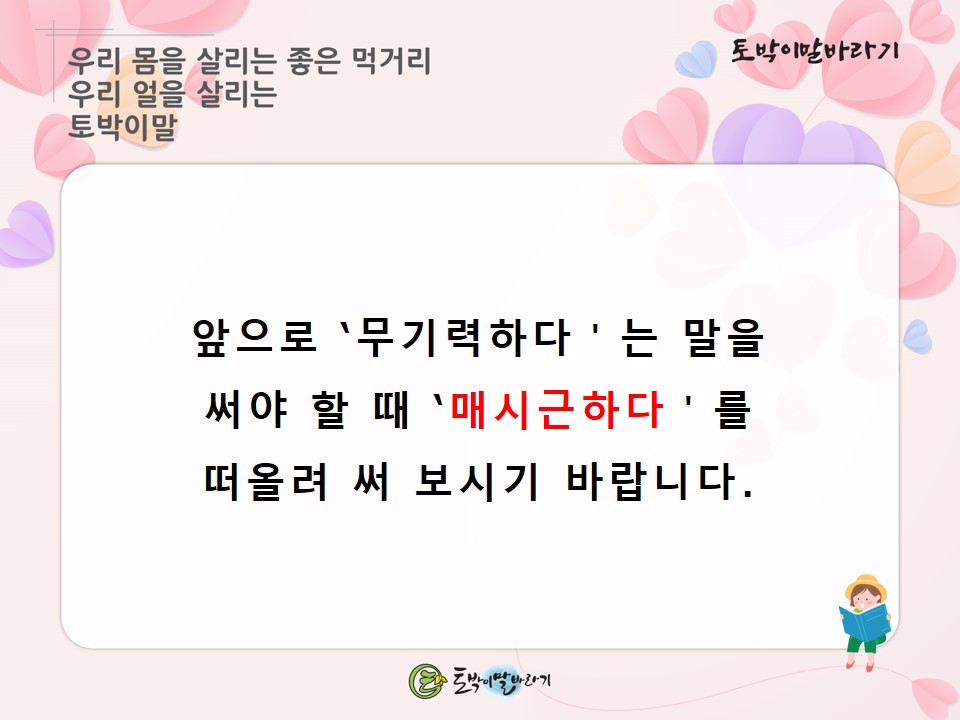 #토박이말바라기 #이창수 #토박이말 #살리기 #매시근하다 #무기력하다 #참우리말 #숫우리말 #순우리말 #고유어