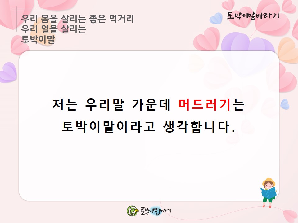 오늘도 토박이말에 마음을 써 봐 주시고 좋아해 주시며 둘레 사람들에게 나눠 주시는 여러분 모두 고맙습니다.