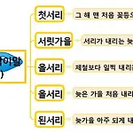 [맞춤 토박이말]-‘서리’와 아랑곳한 토박이말 * 첫서리, 올서리, 늦서리, 무서리 된서리 지난 8일이 차가운 이슬이 내린다는 찬이슬 ‘한로’였는데 벌서 보름이 훌쩍 지나 오늘이 바로 서리날 ‘상강’입니다. 저 위쪽 고장이나 높은 메에는 벌써 서리가 내렸다는 기별도 들었습니다. 이렇게 눈에 띄게 달라지는 철마디(절기)에 맞는 제철 토박이말로 ‘서리’와 아랑곳한 토박이말을 알려드리겠습니다.먼저 ‘첫서리’입니다. 앞서 올해 서리가 내렸다는 기별을 들으셨지 모르겠습니다. 저는 지난 12일 서울에 첫서리가 내렸다는 기별을 봤습니다. 13일에는 한라산에도 첫서리와 함께 얼음이 얼었다고 하더라구요. 바로 그 해 맨 처음 꽃등으로 내린 서리를 ‘첫서리’라고 합니다.이렇게 서리가 내리면 가을도 이제 끝자락으로 넘어간다..