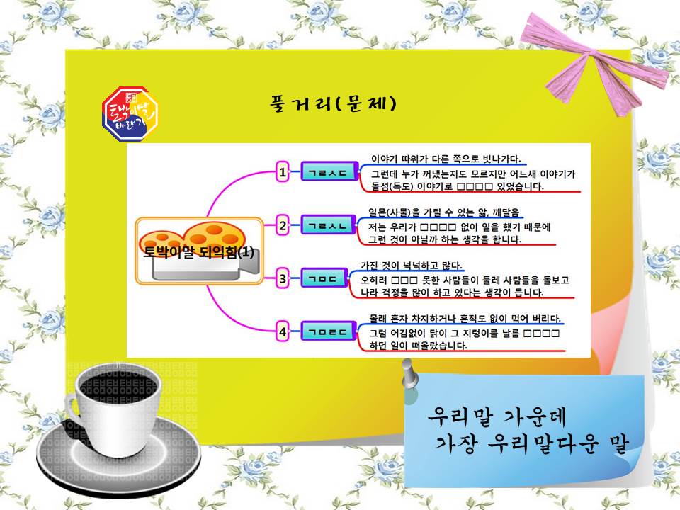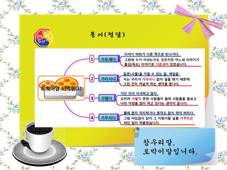 이 이레 맛보신 토박이말을 되익히는 날입니다. 여러분께 심심풀이라도 된다면 짜장 기쁠 것입니다.