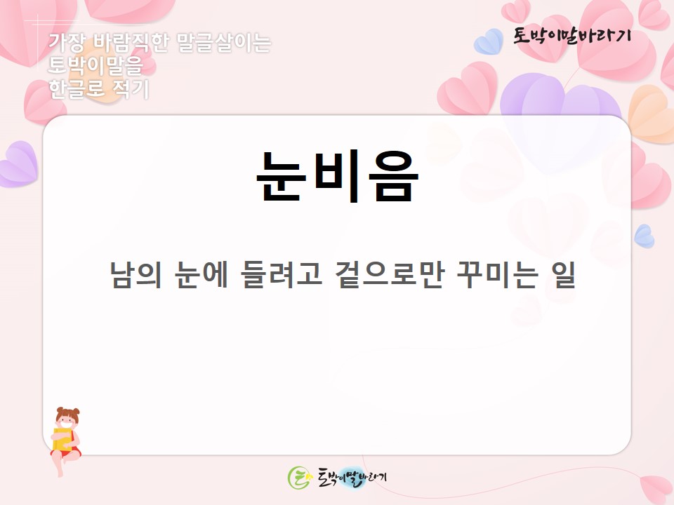 #토박이말바라기 #이창수 #토박이말 #살리기 #눈비음 #겉치레 #겉치장 #허식 #터박이말 #참우리말 #숫우리말 #순우리말 #고유어