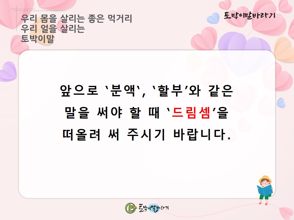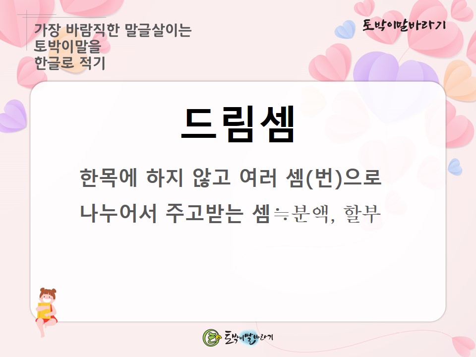 #토박이말바라기 #이창수 #토박이말 #살리기 #드림셈 #할부 #분액 #터박이말 #참우리말 #숫우리말 #순우리말 #고유어