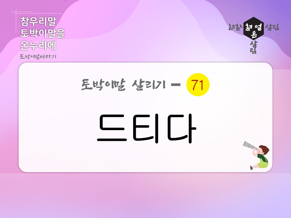 #토박이말바라기 #이창수 #토박이말 #살리기 #드티다 #연기하다 #터박이말 #참우리말 #숫우리말 #순우리말 #고유어